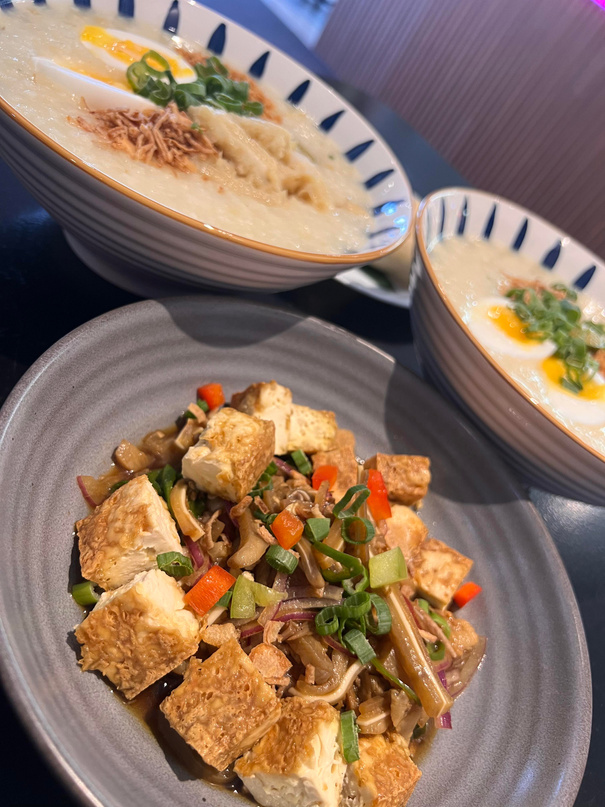 Tender Beef Tripe and Meat cooked in Creamy Peanut Sauce and Topped with steamed Vegetables