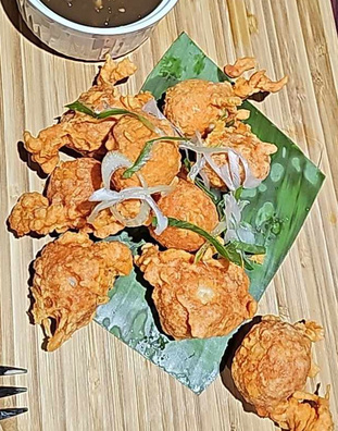 Dish made from Pork Jowl, Ears, and Belly, onions and chilli peppers seasioned with our house made sauce